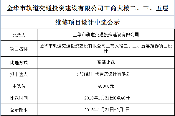 金華市金義東軌道交通有限公司運(yùn)營環(huán)境長效管理系統(tǒng)項目中標(biāo)候選人公示