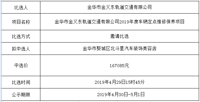 金華市金義東軌道交通有限公司運營環(huán)境長效管理系統(tǒng)項目中標候選人公示
