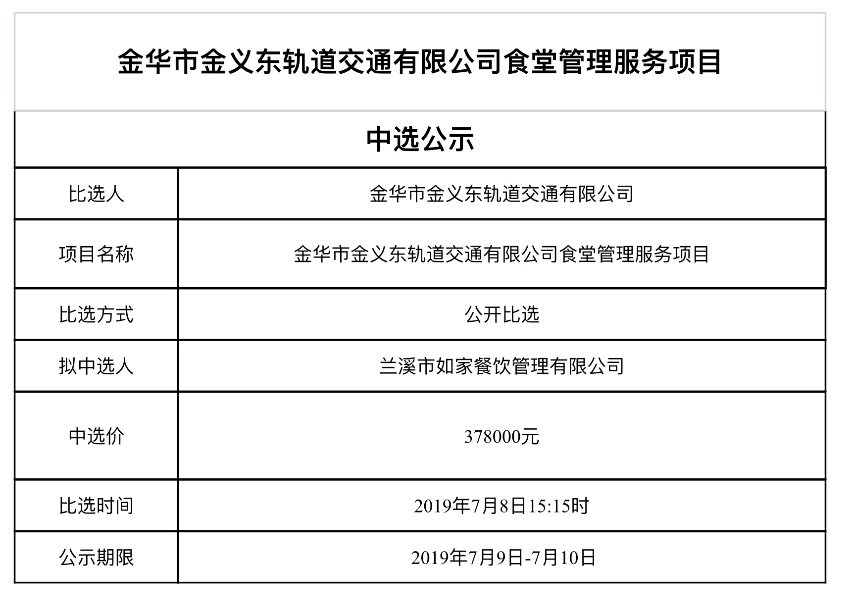 金華市金義東軌道交通有限公司運(yùn)營(yíng)環(huán)境長(zhǎng)效管理系統(tǒng)項(xiàng)目中標(biāo)候選人公示