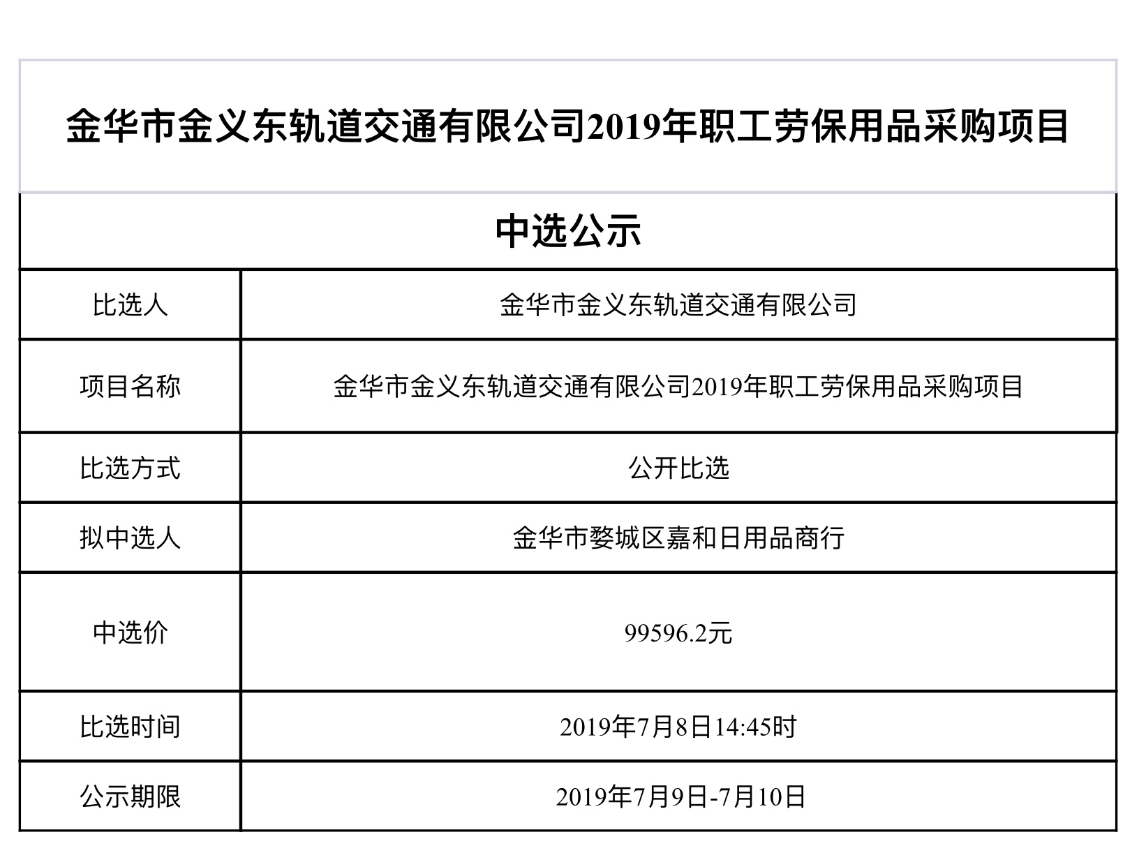 金華市金義東軌道交通有限公司運營2026-2028年度場段司機公寓床上用品采購項目中標候選人公示