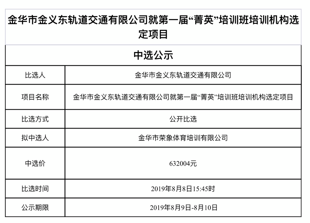 金華市金義東軌道交通有限公司運(yùn)營(yíng)環(huán)境長(zhǎng)效管理系統(tǒng)項(xiàng)目中標(biāo)候選人公示