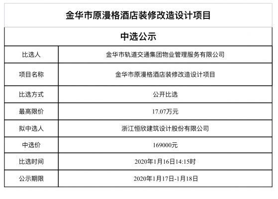 金華市金義東軌道交通有限公司運營環(huán)境長效管理系統(tǒng)項目中標候選人公示