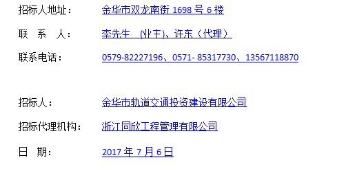 5、潛在投標(biāo)人對(duì)招標(biāo)文件有疑問(wèn)的,通過(guò)浙江省公共資資源交易中心電子招投標(biāo)交易平臺(tái)提交,提交疑問(wèn)截止日為2017年7月13日16:30。招標(biāo)人將于2017年7月20日前在網(wǎng)上發(fā)布補(bǔ)充(答疑、澄清)文件。潛在投標(biāo)人應(yīng)自行關(guān)注網(wǎng)站公告,招標(biāo)人不再一一通知。投標(biāo)人因自身貽誤行為導(dǎo)致投標(biāo)失敗的,責(zé)任自負(fù)。